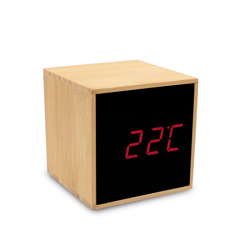 Entdecken Sie die Bambus-Schreibtischuhr mit Wecker – Ihr ultimativer Imageträger und Werbeartikel! Mit ihren kompakten Maßen von 6,5 x 6,5 x 6,5 cm und dem ansprechenden, natürlichen Design aus hochwertigem Bambus und ABS ist sie ein eleganter Blickfang, der nicht nur praktische Funktionen bietet, sondern auch Ihre Marke verkörpert.