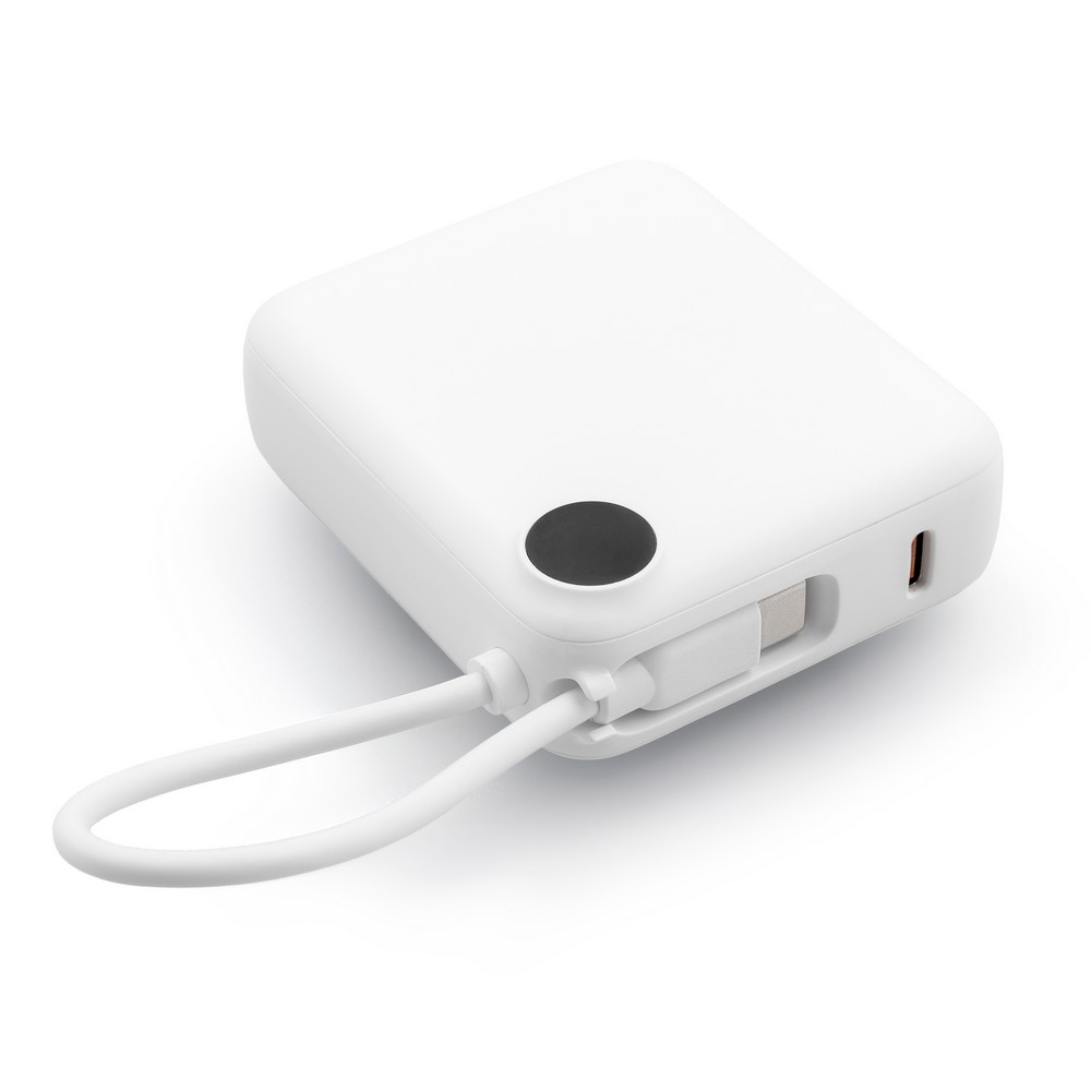 Entdecken Sie die Power Bank 10.000 mAh – Ihr idealer Markenbotschafter! Dieses handliche Kraftpaket mit den kompakten Maßen von 7,4 x 6,3 x 2,3 cm und einem Gewicht von nur 170 g passt in jede Tasche und ist der perfekte Begleiter für unterwegs. Aus robustem ABS gefertigt, bietet die Power Bank dank USB-C Output von bis zu 20W blitzschnelles Laden und bleibt dabei stets griffbereit – die integrierte Kabelhalterung mit Haken sorgt für zusätzliche Flexibilität.